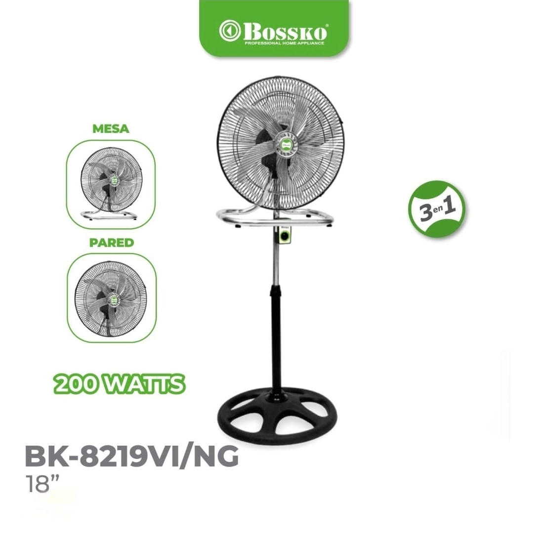 Ventilador Bossko 3 en 1 de 18” – 200W Alta Potencia